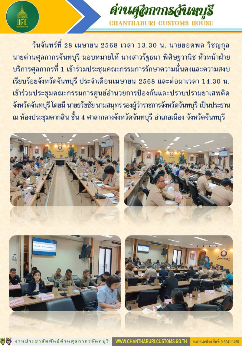 ด่านศุลกากรจันทบุรี **เข้าร่วมประชุมคณะกรรมการรักษาความมั่นคงและความสงบเรียบร้อยจังหวัดจันทบุรี ประจำเดือนเมษายน 2568**