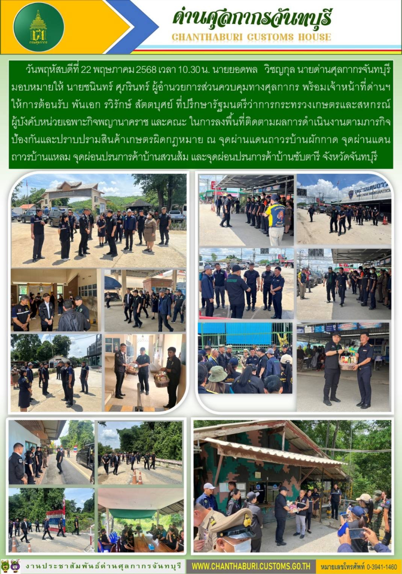 ด่านศุลกากรจันทบุรีให้การต้อนรับ ที่ปรึกษารัฐมนตรีว่าการกระทรวงเกษตรและสหกรณ์ ผู้บังคับหน่วยเฉพาะกิจพญานาคราช (พันเอก รวิรักษ์ สัตตบุศย์)