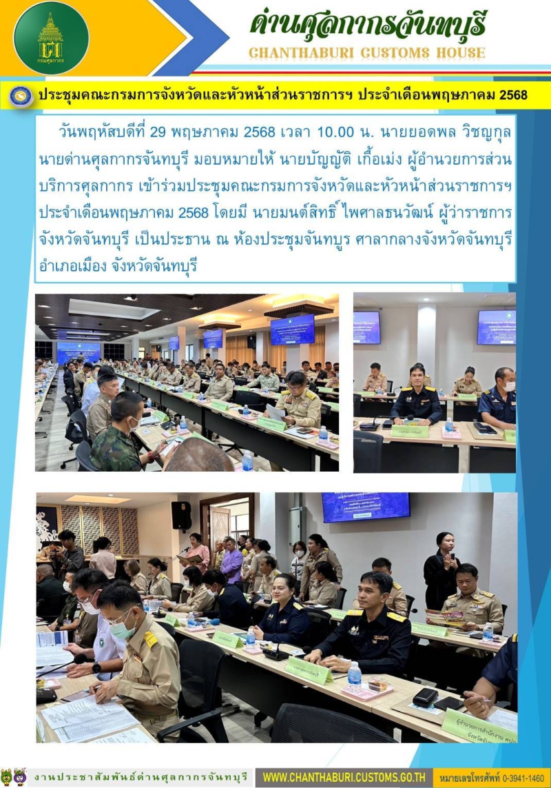 ด่านศุลกากรจันทบุรี เข้าร่วมประชุมคณะกรมการจังหวัดและหัวหน้าส่วนราชการฯ ประจำเดือน พฤษภาคม 2568