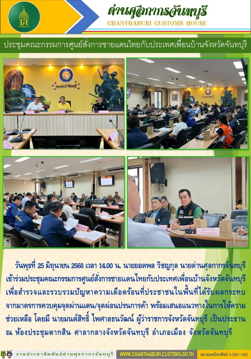 ด่านศุลกากรจันทบุรี เข้าร่วมประชุมคณะกรรมการศูนย์สั่งการชายแดนไทยกับประเทศเพื่อนบ้านจังหวัดจันทบุรี