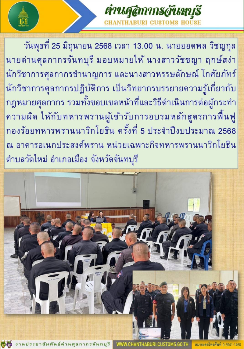 ด่านศุลกากรจันทบุรี ร่วมเป็นวิทยากรบรรยายความรู้เกี่ยวกับกฏหมายศุลกากร