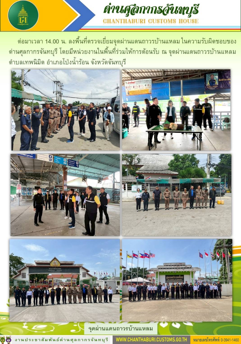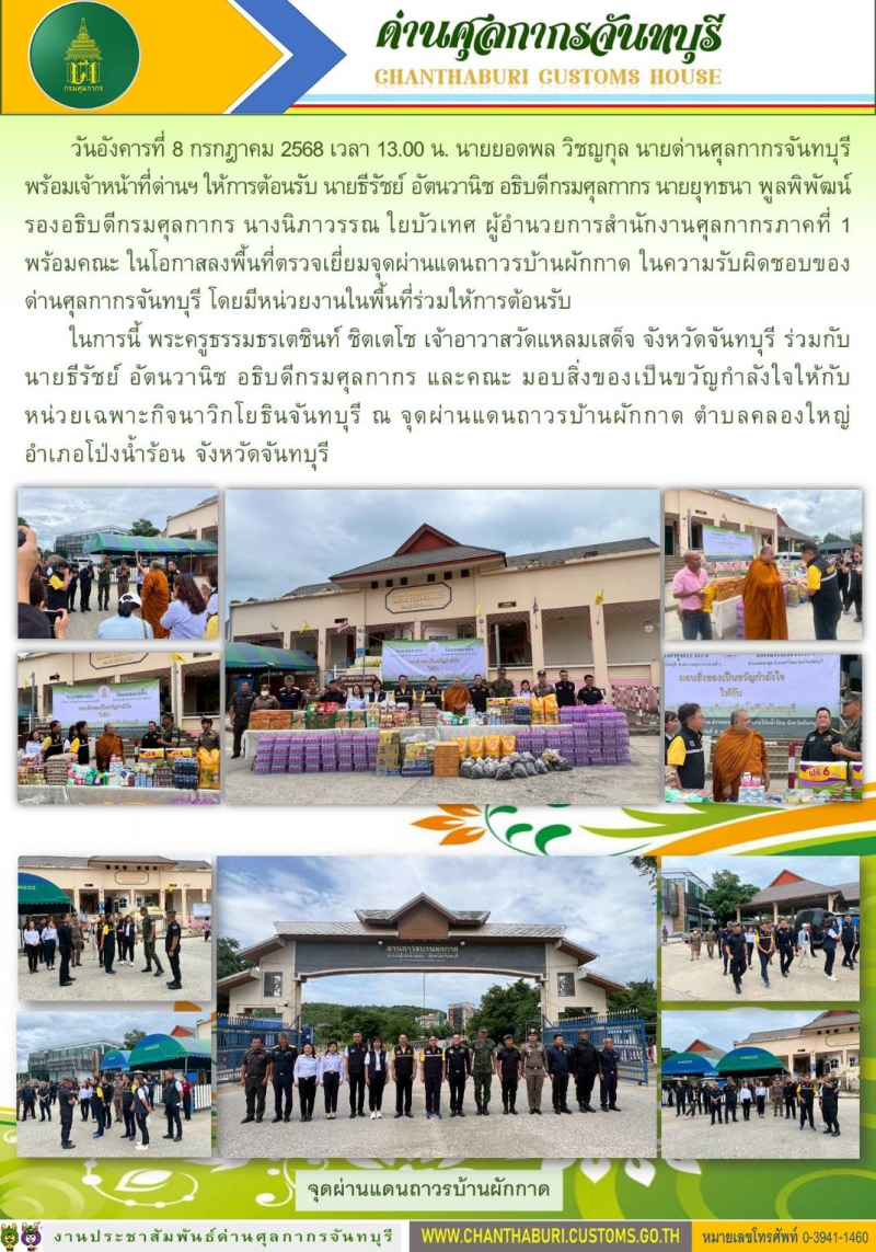 ด่านศุลกากรจันทบุรี ให้การต้อนรับ นายธีรัชย์ อัตนวานิช อธิบดีกรมศุลกากร ในโอกาสตรวจเยี่ยมจุดผ่านแดนถาวรบ้านผักกาด จุดผ่านแดนถาวรบ้านแหลม