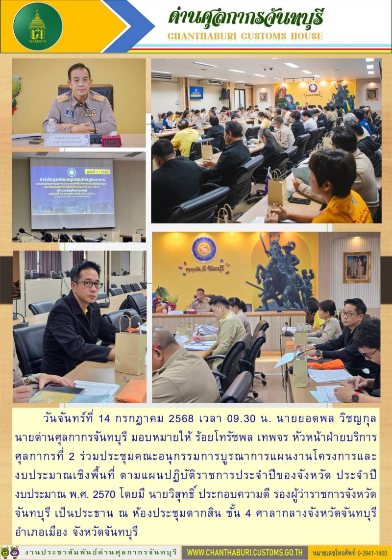ด่านศุลกากรจันทบุรี เข้าร่วมประชุมคณะอนุกรรมการบูรณาการแผนงานโครงการและงบประมาณเชิงพื้นที่