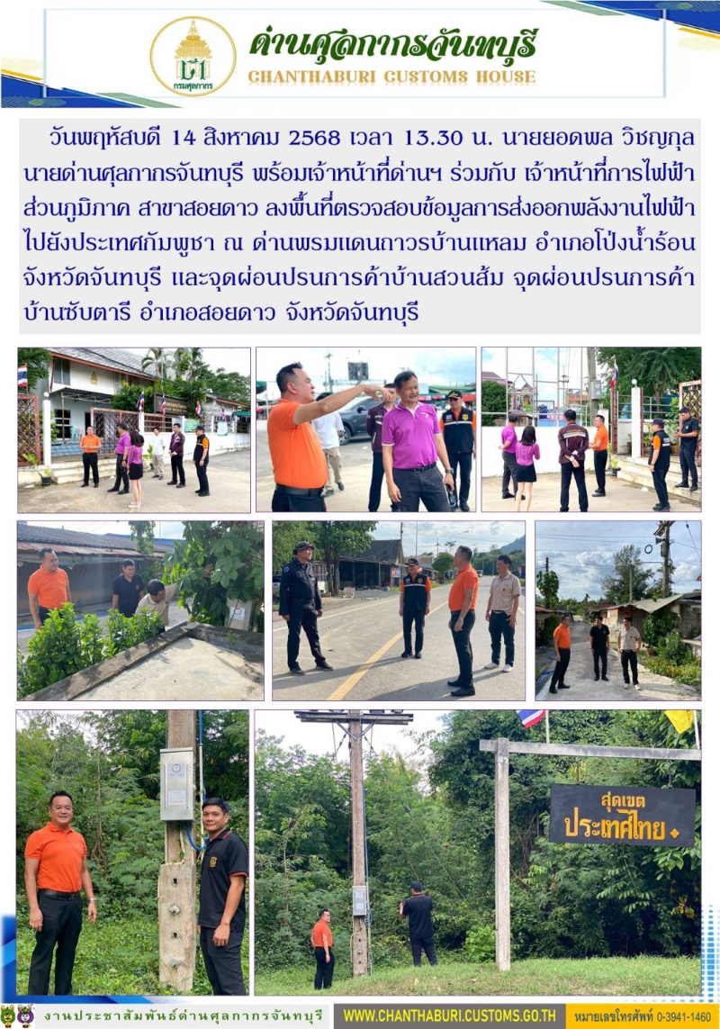 ด่านศุลกากรจันทบุรี ลงพื้นที่ตรวจสอบข้อมูลการส่งออกพลังงานไฟฟ้าไปยังประเทศกัมพูชา