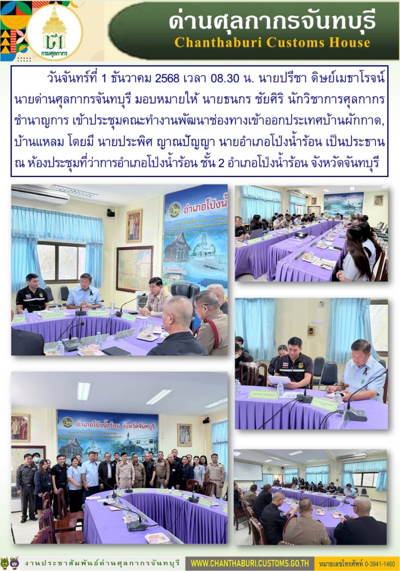 ด่านศุลกากรจันทบุรี เข้าประชุมคณะทำงานพัฒนาช่องทางเข้าออกประเทศบ้านผักกาด,บ้านแหลม