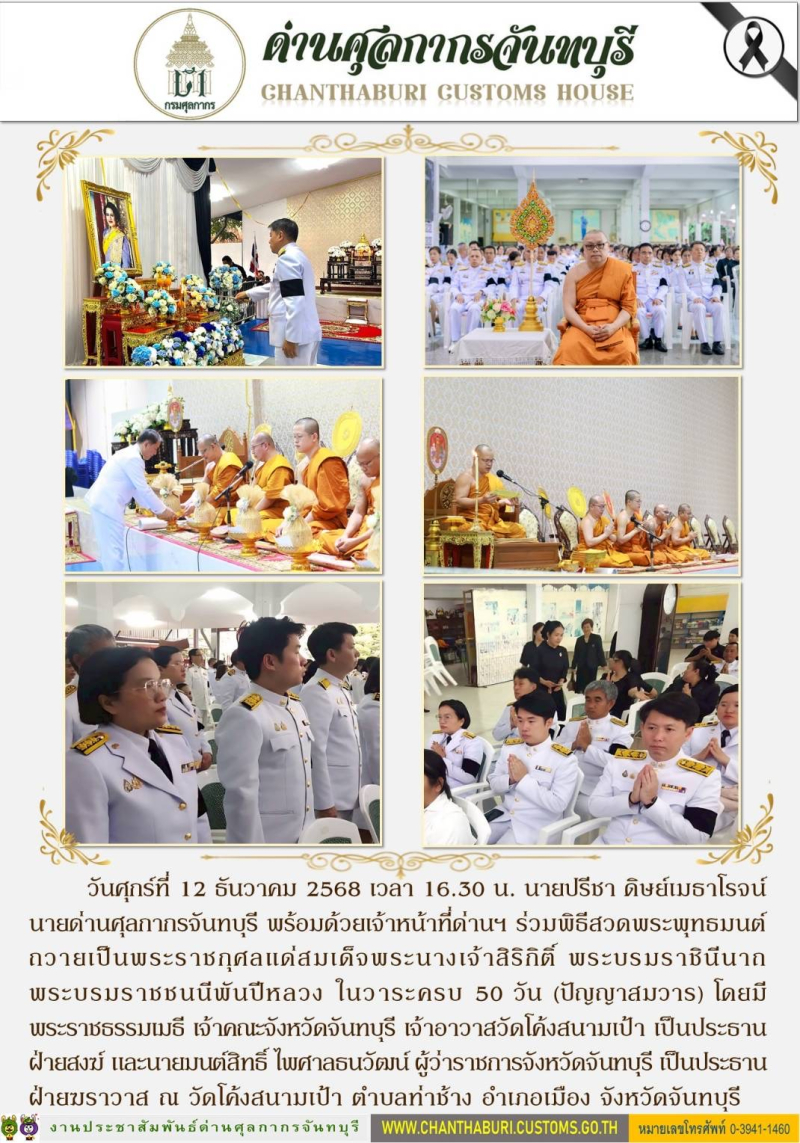 ด่านศุลกากรจันทบุรี ร่วมพิธีสวดพระพุทธมนต์ ถวายเป็นพระราชกุศลแด่สมเด็จพระนางเจ้าสิริกิติ์ พระบรมราชินีนาถ พระบรมราชชนนีพันปีหลวง