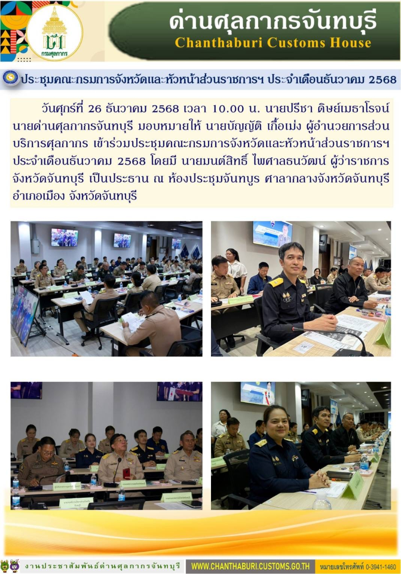 ด่านศุลกากรจันทบุรี ประชุมคณะกรมการจังหวัดและหัวหน้าส่วนราชการฯ ประจำเดือน ธันวาคม 2568